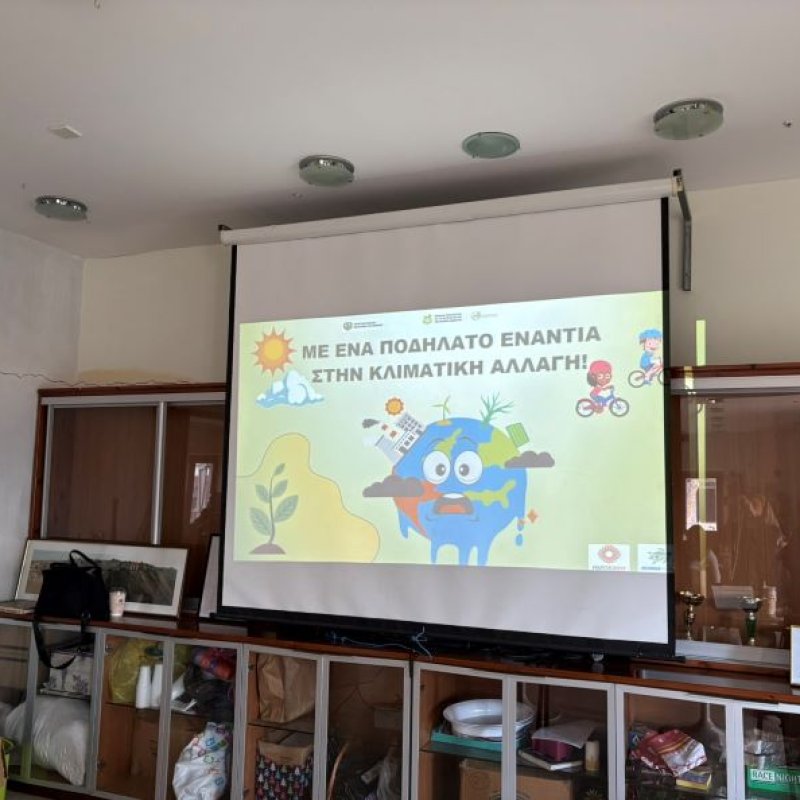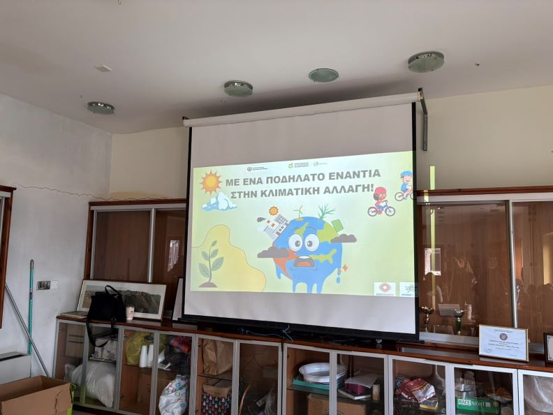 Την Πέμπτη, 19 Φεβρουαρίου 2026, οι μαθητές της Ε' τάξης του σχολείου μας επισκέφτηκαν το χωριό Κάθηκας, στα πλαίσια του περιβαλλοντικού προγράμματος "Με ένα ποδήλατο ενάντια στην κλιματική αλλαγή". Εκεί οι μαθητές παρακολούθησαν παρουσίαση σχετική με το περιβάλλον και την κλιματική αλλαγή. Στη συνέχεια ανέβηκαν στα ποδήλατα που προσφέρει το πρόγραμμα και έκαναν μια βόλτα, ακολουθώντας τη σηματοδοτημένη ποδηλατική διαδρομή που σχεδιάστηκε ειδικά για το εκπαιδευτικό πρόγραμμα, απολαμβάνοντας το όμορφο φυσικό περιβάλλον του χωριού.