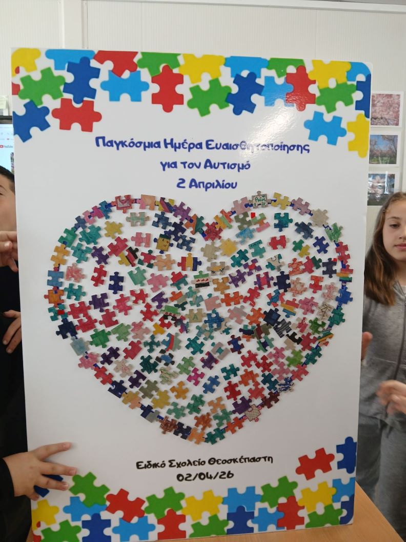 Την Πέμπτη, 2 Απριλλίου 2026, οι μαθητές του τμήματος της Στ' 2, καθώς και οι μαθητές της Μονάδας Ειδικής Εκπαίδευσης του σχολείου μας επισκέφτηκαν το Ειδικό Σχολείο "Θεοσκέπαστη" και παρακολούθησαν εκπαιδευτική δράση σχετική με την παγκόσμια μέρα ευαισθητοποίησης για τον αυτισμό που είναι η 2 Απριλίου.