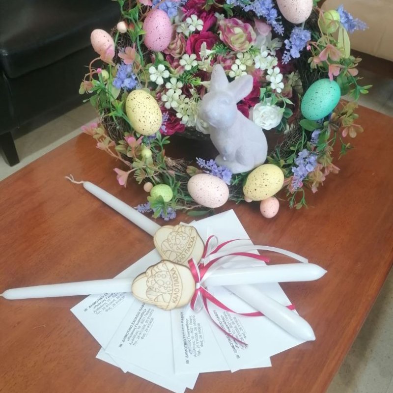 Την Παρασκευη, 3 Απριλίου 2026, έγινε η κλήρωση των Πασχαλινών λαχνών από τον Σύνδεσμο Γονέων του σχολείου μας. Επίσης προσφέρθηκε από τον Σύνδεσμο Γονέων λαμπάδα σε όλους τους μαθητές του σχολείου. Ακολούθως οι μαθητές της Ε' τάξης τραγούδησαν σε όλο το σχολείο το τραγούδι του Λαζάρου.